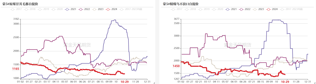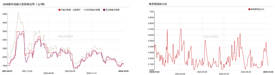 现货:中性焦煤成交转弱,线上竞拍流拍明显增多,产地报价也出现下跌;目前安泽低硫主焦下跌至1650元/吨,晋中中硫下跌至1600元/吨附近;蒙煤成交不活跃,蒙5原煤报价在1160-1180元/吨附近。