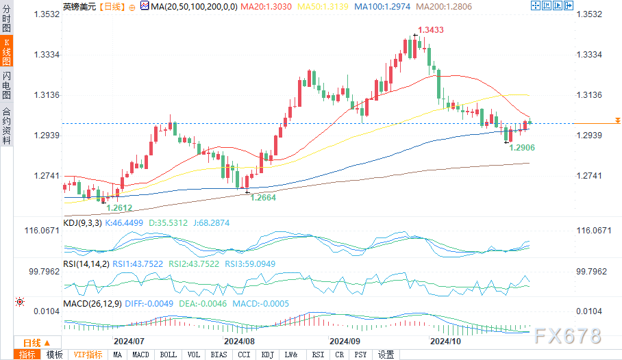 支撑位:1.2950(100日移动均线)、1.2900、1.2806(200日移动均线)