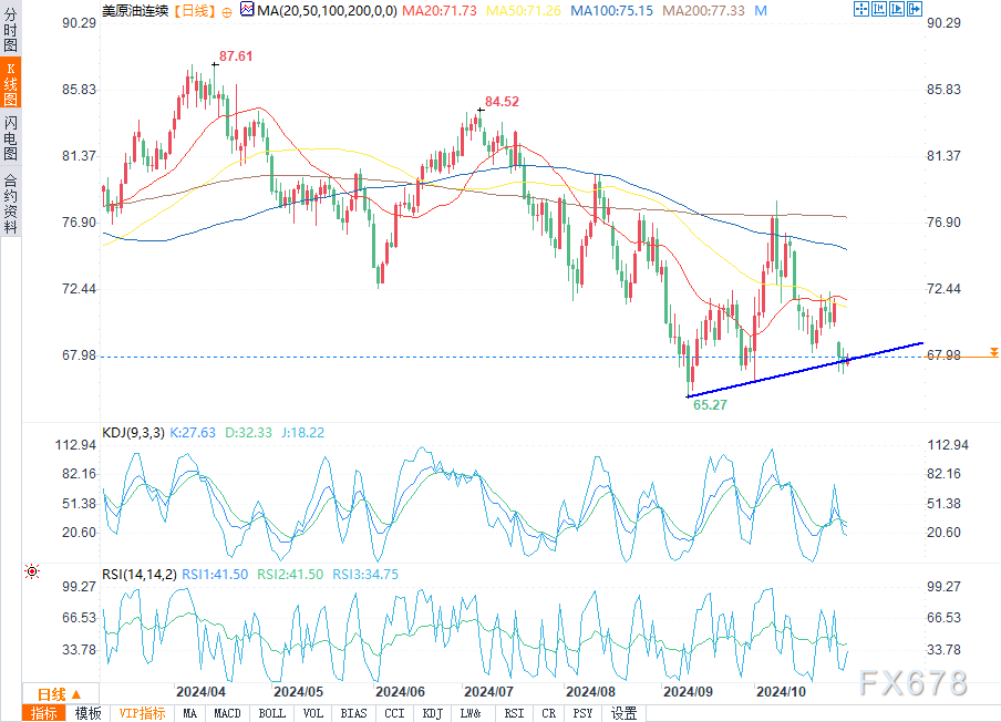 本周低点下方是10月初的低点66.22,但如果再次测试这一水平的话,连同9月低点64.81可能会在未来几天提供支撑。