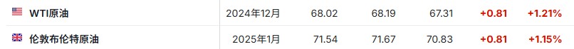 3. 截至发稿,WTI原油涨1.21%,报68.02美元/桶。布伦特原油涨1.15%,报71.54美元/桶。