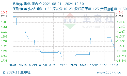 10月30日港口炼焦煤市场现货偏弱运行。据生意社监测系统显示,截止10月30日,生意社炼焦煤价格指数在1817.25元/吨,较周初(28日)下降-1.36%。