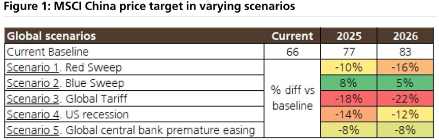 图7:瑞银(UBS)预估的不同选举结果对于中国股市的影响