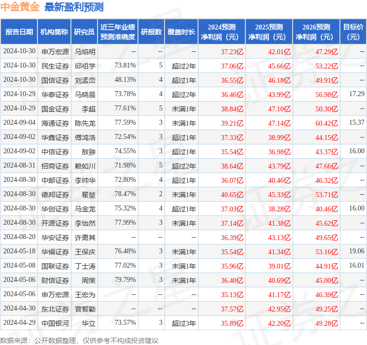 中邮证券有限责任公司李帅华,杨丰源近期对中金黄金进行研究并发布了研究报告《Q3业绩基本符合预期,期待Q4业绩释放》,本报告对中金黄金给出买入评级,当前股价为14.23元。