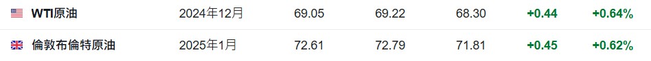 3. 截至发稿,WTI原油涨0.64%,报69.05美元/桶。布伦特原油涨0.62%,报72.61美元/桶。