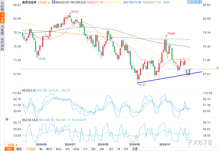 汇通财经APP讯——周四(10月31日)欧盘时段,WTI原油期货在盘中下探至68.3后反转,目前小幅上涨,报69.10美元,涨幅0.71%。
