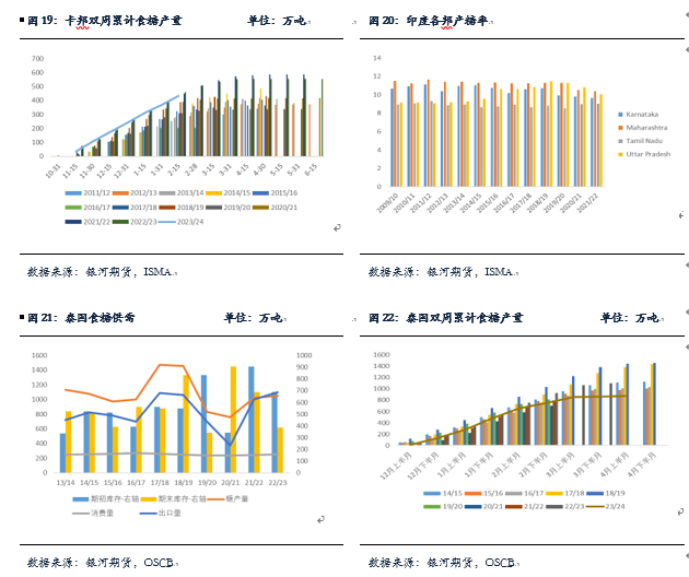 泰国方面,增产预期的背景下泰国食糖升贴水处于同期高位,预计随着压榨的开始、升贴水仍有上行空间。