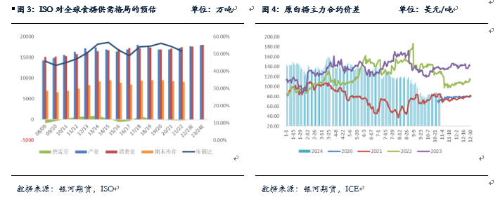 原白糖价差方面,2023/24榨季初期起,全球原白糖一直维持分化状态,国际白糖相对短缺,伦白糖走势强于美原糖。在北半球增产预期的背景下,泰国糖升水处于同期相对高位水平。