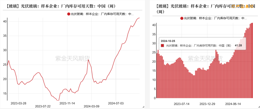 截至2024年10月25日,光伏玻璃样本企业厂内库存可用天数为41.28天。