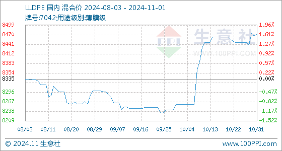 11月1日生意社LLDPE基准价为8471.67元/吨