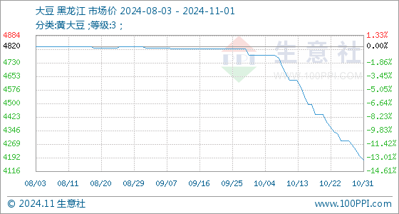 11月1日生意社大豆基准价为4180.00元/吨