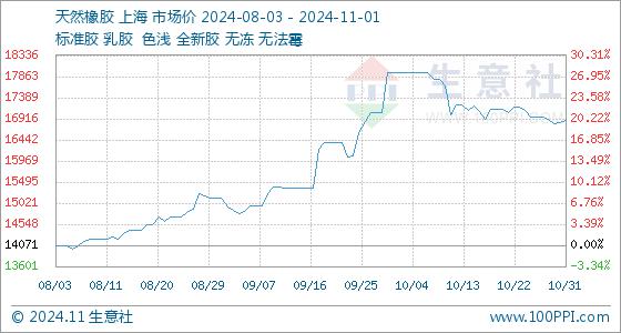 11月1日生意社天然橡胶基准价为16868.00元/吨