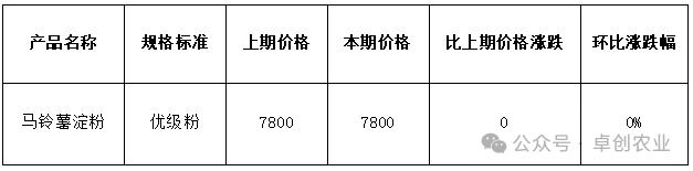 注:一级粉质量等级:白度90%,粘度1100以上,此价格采集27家国内主流马铃薯淀粉企业出厂价格,产量占比行业生产总量的75%以上。注:价格为企业报价。