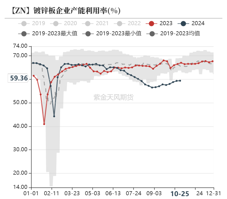 镀锌开工率:偏空 周度镀锌开工率环比下降1.75%至60.72%。