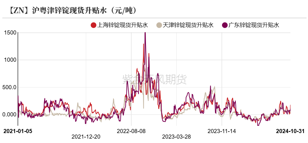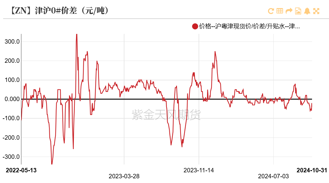 上海升水一路下行,环比上周均价下调35元/吨。截至本周四,国内普通品牌对2411合约升水20~40元/吨,高价品牌双燕暂无报价。