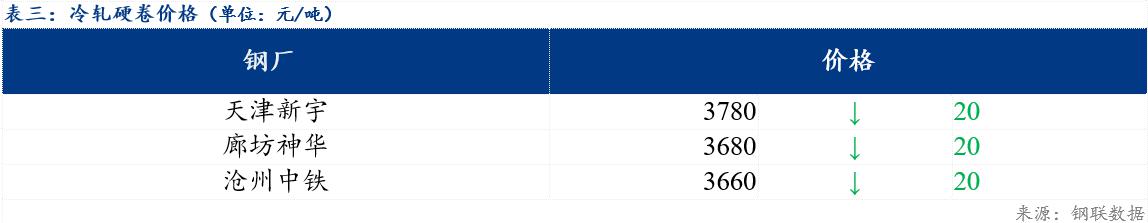 3、以上冷轧硬卷廊坊神华规格为0.27mm,其余为0.35mm;