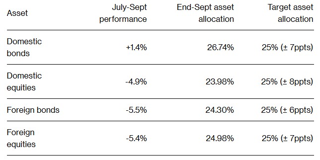 截至9月的三个月内,GPIF的资产总额为248.2万亿日元(约1.6万亿美元),亏损幅度为3.6%。日本债券在其投资组合中的占比从6月的25.85%增加到26.74%,而国内股票的占比则从24.37%降至23.98%。
