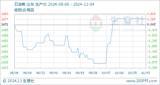 11月4日,生意社石油焦基准价为1478.50元/吨,与本月初持平。