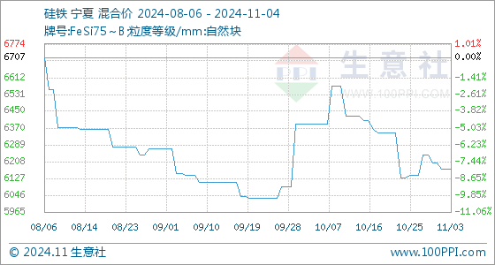 11月4日生意社硅铁基准价为6172.86元/吨