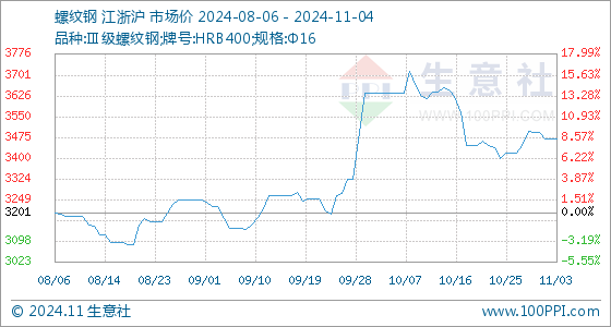 11月4日生意社螺纹钢基准价为3470.00元/吨