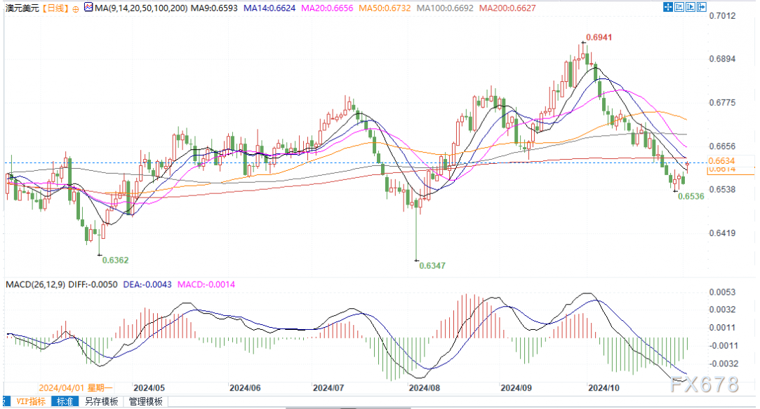 澳元兑美元逼近14日均线,若突破可能瞄准0.6700心理水平