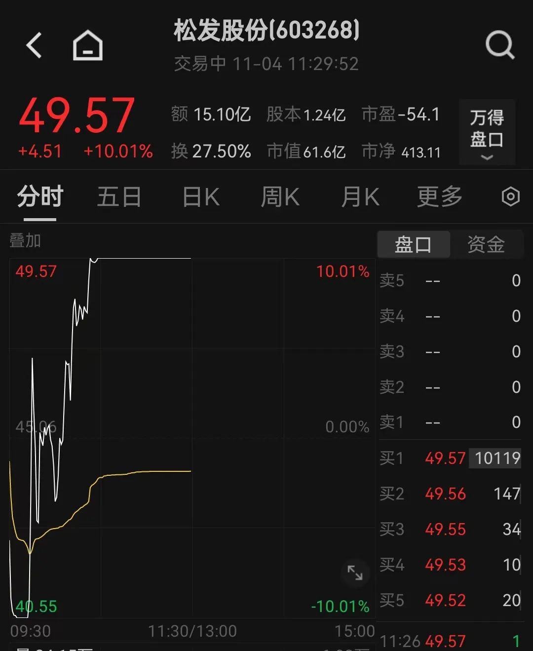 不过临近10点,松发股份突然撬板、拉升封板,盘中上演“地天板”。