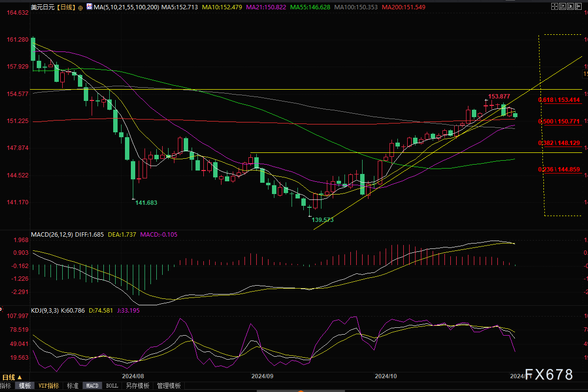 上方5日均线阻力在152.73附近,若能收复该位置,则削弱后市看空信号。但需要站稳在153.41上方,才能打开进一步上涨通道。