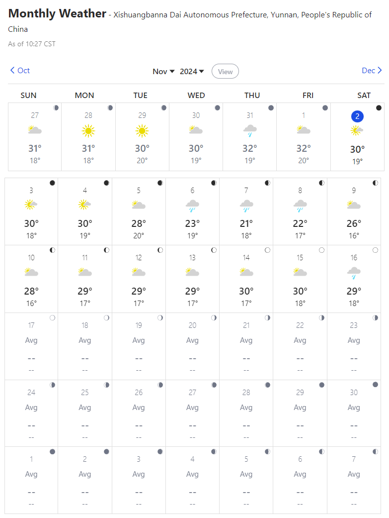 从weather.com数据来看,海南和云南将陆续进入停割期。未来15天,云南版纳地区降雨量不大。