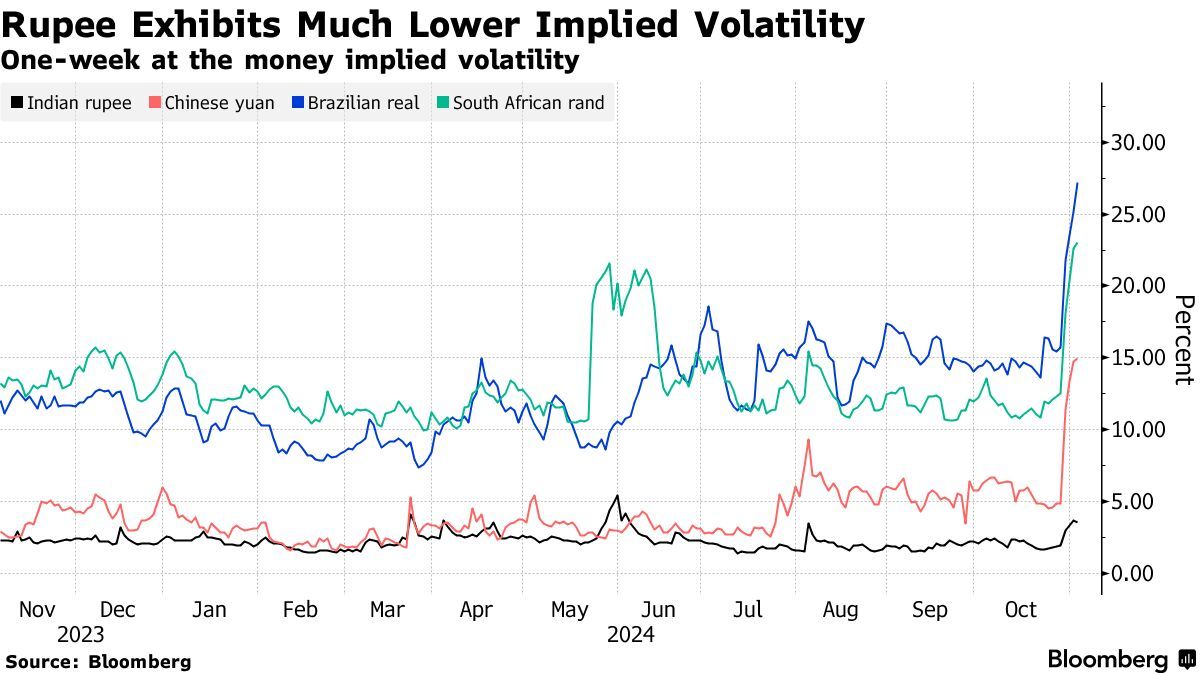 最新的民意调查显示,在即将到来的美国大选投票之前,民主党总统候选人哈里斯与共和党总统候选人特朗普之间没有明显的领先者。在竞争激烈的美国总统大选中,印度卢比仍是抵御波动性的最佳新兴市场押注之一,因为印度央行准备以其全球第四大外汇储备捍卫卢比。