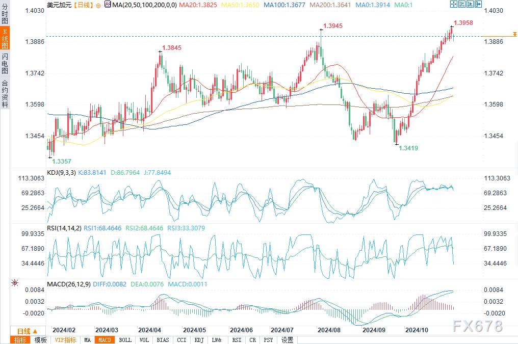 从风险回报的角度来看,价格需要突破几个附近的水平,包括10月15日的上升趋势和1.3869的水平支撑。如果价格下跌,1.3815是一个潜在的目标,之后是1.3748和1.3700。若止损在周五高位上方,将提供防范反转的保护。