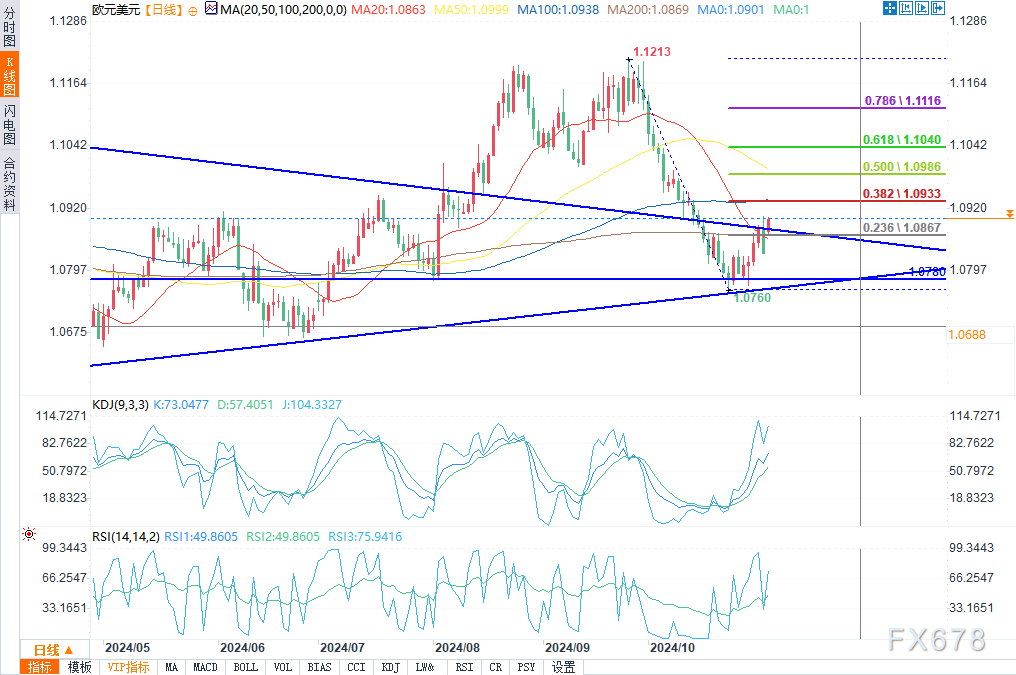 欧元/美元开始在1.0820上方进行上行修正。欧元/美元盘中攀升至1.0880上方,但在1.0900附近上涨受阻。