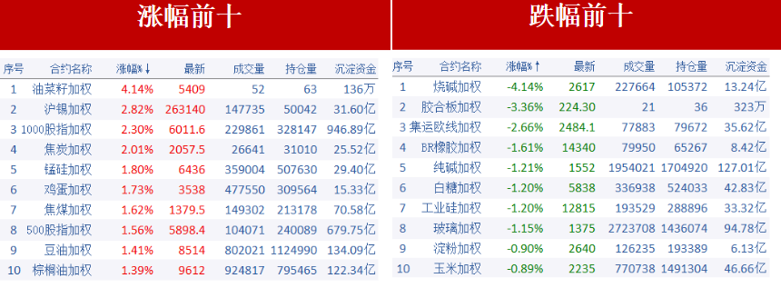 资金流向方面,沪铜12月、焦煤25年1月合约获资金净流入9.16亿元和3.72亿元,而沪金12月、玻璃25年1月合约则遭净流出16.7亿元和7.51亿元。