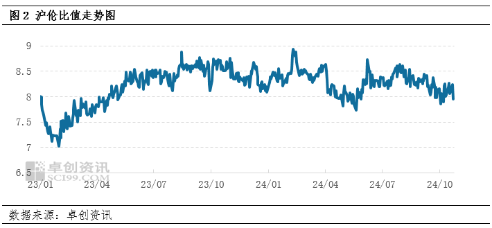 2024年一到三季度锌精矿进口量整体下滑,主要有两方面原因:首先,沪伦比值有下滑表现,1-9月份,沪伦比值整体维持在7.5-9的区间内,年内出现了两轮下滑表现,因此,进口利润偏低。其次,海外主产区年内产出表现不佳,矿品味下滑、极端天气、意外情况、设备技术问题和停产项目未恢复等多重因素的影响之下,整体产出下滑,从而引发出口减少。