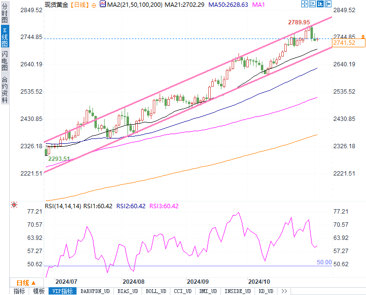 截至发稿,现货黄金上涨0.20%,报于每盎司2740.39美元。随着大选结果的不确定性和美联储可能降息的预期,黄金作为避险资产的需求有所提升。分析师普遍认为,在目前的政治环境下,市场对美元的看法偏向谨慎,可能有助于支撑黄金价格。知名机构的经济学家指出,若哈里斯获胜并延续现有政策,美元可能走弱,而黄金的避险属性将进一步凸显,吸引更多买盘。
