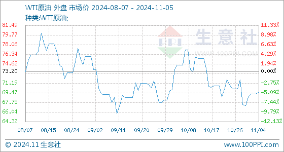 11月5日生意社WTI原油基准价为69.49美元/桶