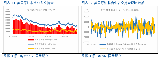 截至10月22日当周,美国原油产量维持在历史高位,油市的供应压力进步加剧。同时,原油市场对2025年的需求增长前景持悲观看法。能源信息署、国际能源署和石油输出国组织均发布了最新月度报告,其中IEA和OPEC已连续三个月调低了对全球石油需求增长的预期。IEA在其长期能源市场展望中指出,新能源对传统能源的替代作用日益增强,可能导致未来几十年内全球原油需求的下降速度超出当前预期。根据海关统计数据,中国在2024年9月的原油进口量为45,487.774吨,较上月下降7.35%,与去年同期相比也减少了0.50%。中国一直是推动原油市场需求增长的关键力量,但目前这一增长动力正在逐渐减弱。在市场风险情绪有所降温之后,多数原油交易者预计从2025年起市场将面临供过于求的状况,从而可能导致油价持续低迷。在此背景下,原油基金多减空增,净多头跌势加速。