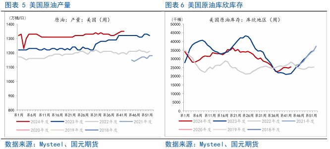 截至10月25日当周,美国原油日均产量1350万桶,与前周日均产量持平,比去年同期日均产量增加30万桶;美国炼厂加工总量平均每天1605.3万桶,比前一周减少3万桶;炼油厂开工率89.1%,比前一周下降0.4个百分点。当周,美国原油进口量平均每天597.5万桶,比前一周减少45.6万桶成品油日均进口量135.6桶,比前一周减少22.8万桶;美国原油出口量日均426.1万桶,比前周每日出口量增加14.9万桶,比去年同期日均出口量减少63.6万桶。