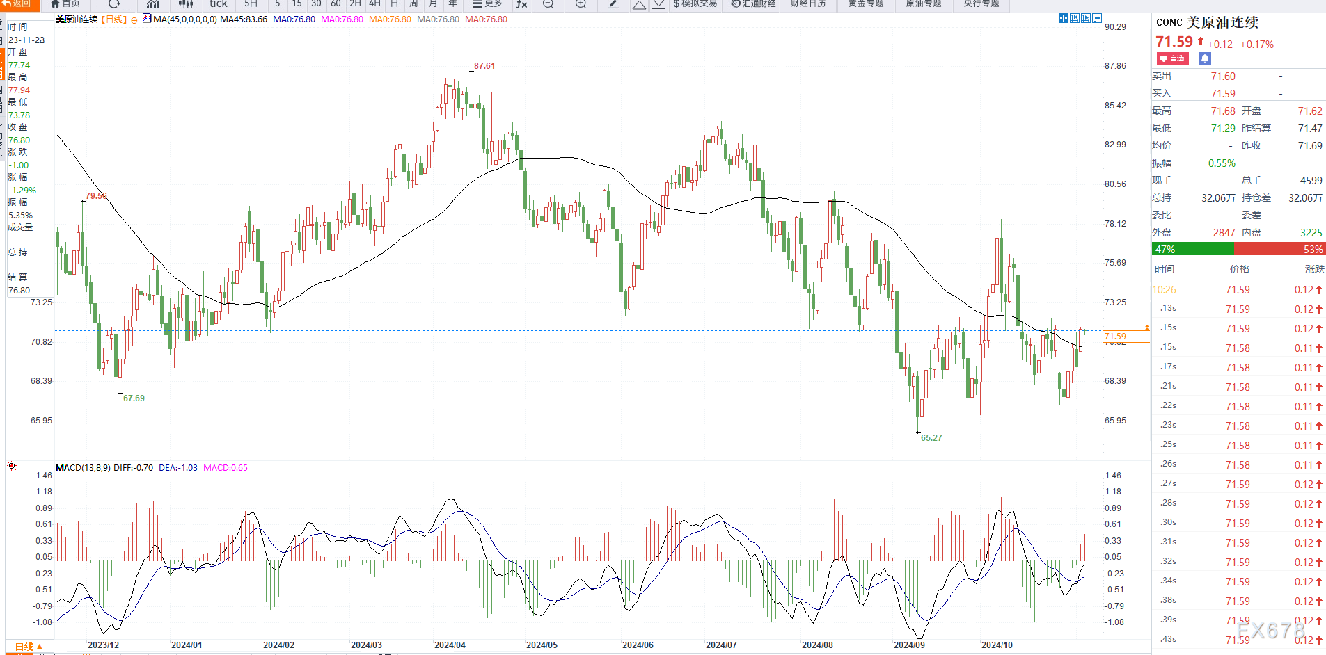 汇通财经APP讯——周二(11月5日)美原油亚盘时段小幅震荡,但依然延续隔夜涨势,交投于71.51美元/桶附近。而基本面上美国大选即将落地,市场反而对于原油需求端的预期转为乐观,加上OPEC+增产放缓,形成供需双重提振的概率进一步增加。