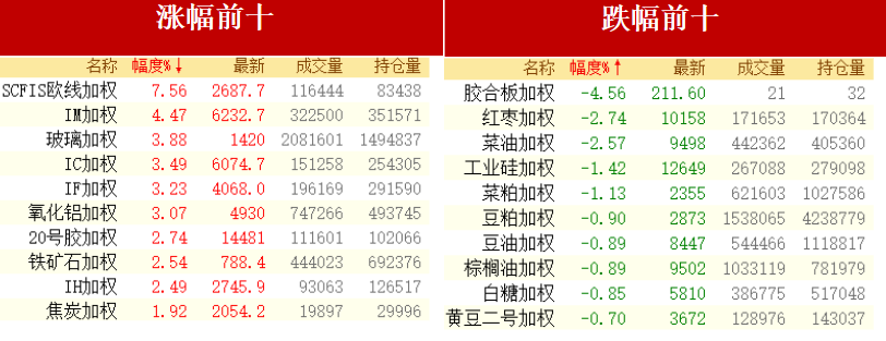 【每日收评】集运欧线涨超8%玻璃、氧化铝涨超4%