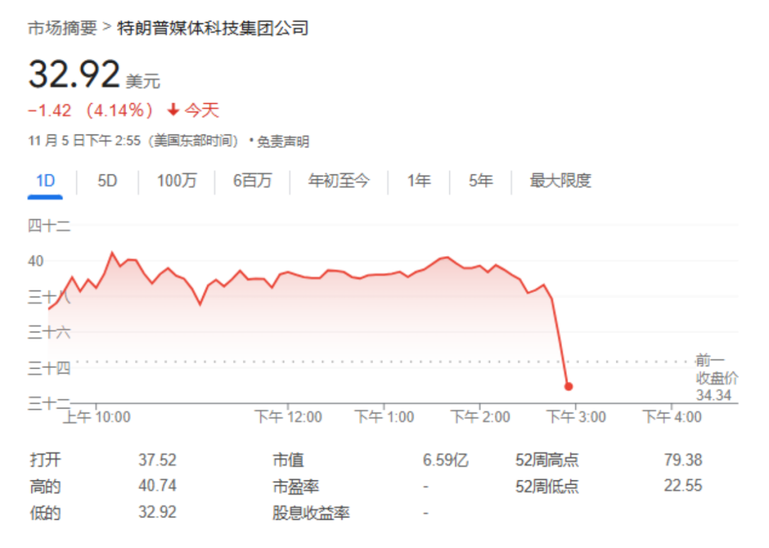 特朗普媒体科技集团盘中跳水超20%