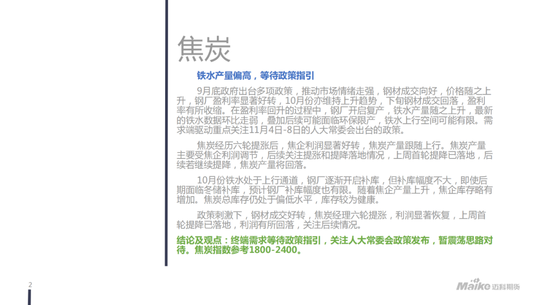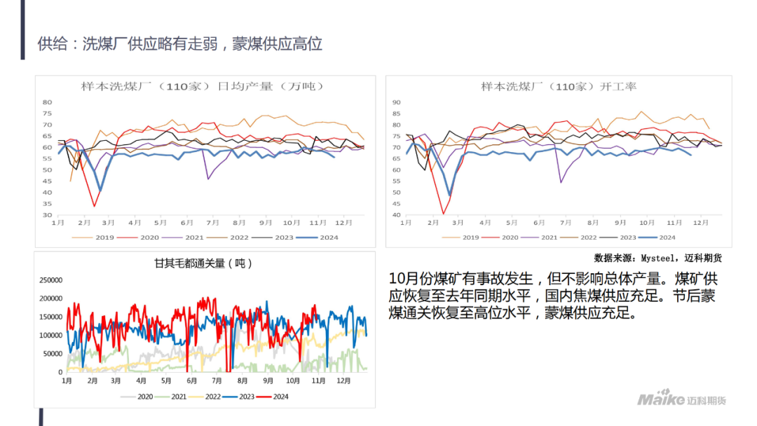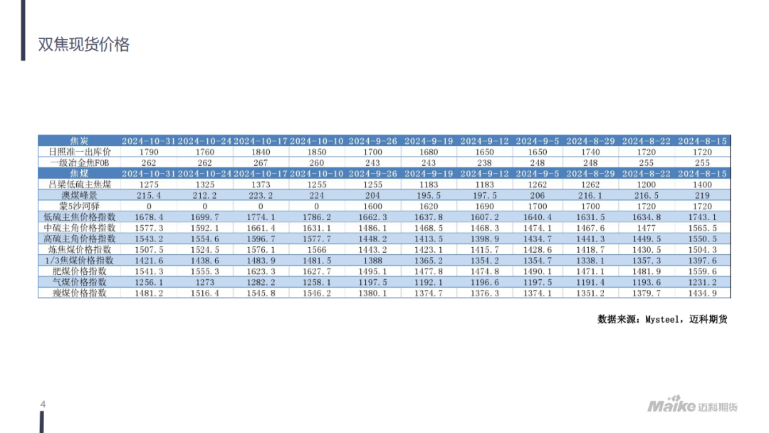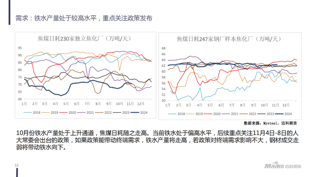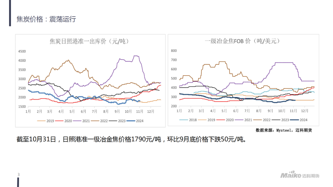 【迈科煤焦月报】终端需求等待政策指引,双焦关注冬储补库情况