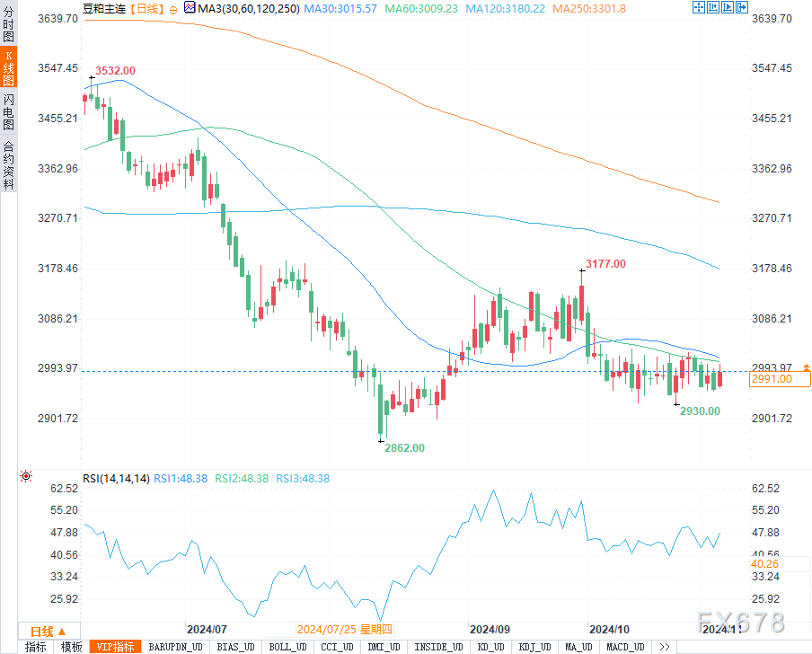 在农产品领域,豆粕市场近期表现活跃,全球供需错配导致其价格剧烈波动。11月初,由于美国和巴西两大主要出口国的供给波动,豆粕价格出现明显上涨。尤其在中国对巴西豆粕需求旺盛的背景下,供应压力有所缓解,但短期内美豆出口仍存在不确定性。