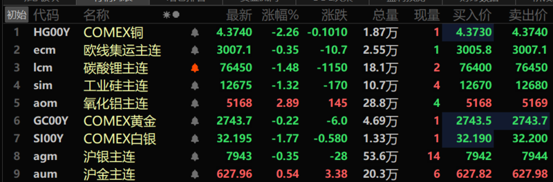 贵金属方面,截至11:47分,COMEX黄金跌0.22%;COMEX白银跌1.77%。国内方面,沪金涨0.54%,沪银跌0.35%。
