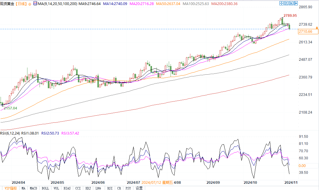 美国大选结果消除市场的不确定性,触发新一轮的风险偏好交易,进一步压制了黄金的避险需求。然而,由于全球金融市场波动性可能激增,交易员保持谨慎,黄金价格的下行受到一定支撑。