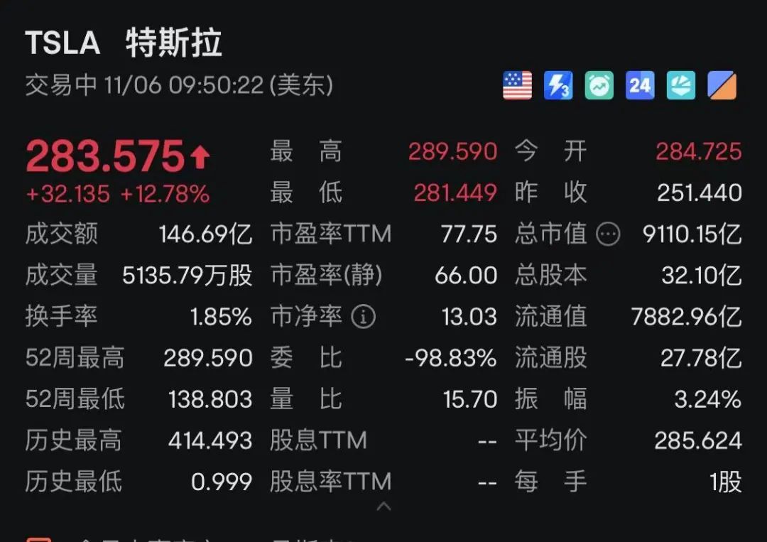 特朗普媒体科技集团大涨,盘中一度因波动性停牌。而被视作“特朗普概念股”的特斯拉也大幅上涨。