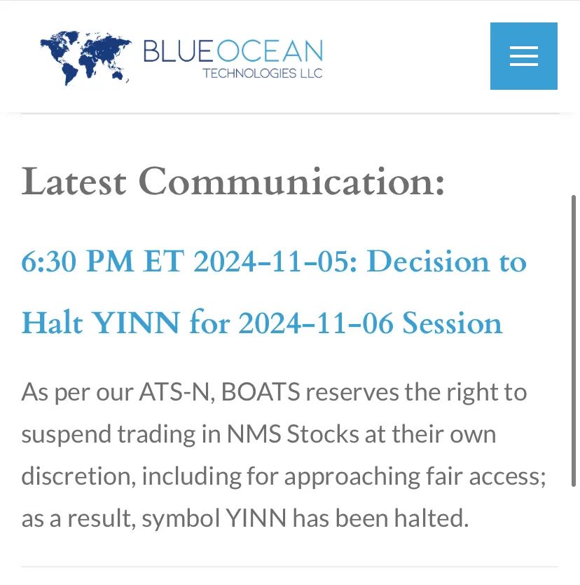 北京时间11月6日午后,富途控股、老虎证券均发布通知称,接到夜盘上游供应商Blue Ocean通知,由于3倍做多富时中国ETF-Direxion(YINN)近日交易量逼近监管ATS上限,该ETF的夜盘交易暂停,常规交易时段不受影响。