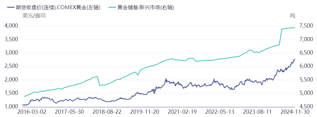 今年,黄金价格稳定攀升,表现靓丽。究其原因主要是新兴市场国家央行购金、美国实际利率阶段性下降以及地缘政治风险的综合作用。