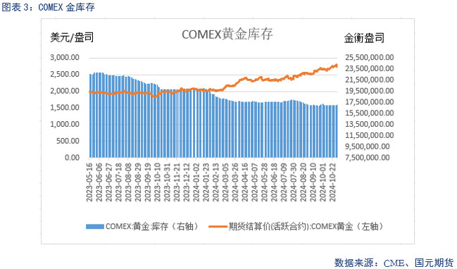 上周黄金价格小幅上涨。上周美国经济数据呈现分化。9月JOLTS职位空缺显著低于预期,创三年新低,裁员人数增加,显示就业市场压力。尽管如此,10月ADP报告新增就业人数超预期至23.3万人,企业招聘加速。三季度实际GDP环比增长2.8%,核心PCE物价指数环比上涨2.2%,反映消费对经济的支持。与此同时,10月非农新增就业人数骤降至1.2万人,为2020年以来最低,失业率上升至4.14%。美元指数震荡维稳。降息幅度以及大选都存在不确定性,本周多项重要事件发布,短期不稳定性较大,预期黄金偏涨但操作上不建议追涨。