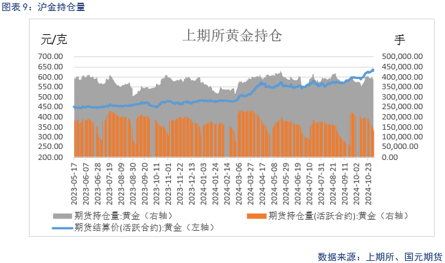 截止11月1日当周,沪金主力期货持仓量为134619手,较上周减少30811手;沪银主力期货持仓量为344236手,较上周减少35239手。