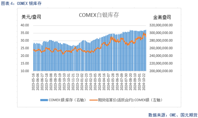 芝加哥商业交易所公布报告显示,11月1日COMEX金库存1713.34万盎司,较前一周增加9.04万盎司。芝加哥商业交易所公布报告显示,11月1日COMEX银库存3.09亿盎司,较前一周增加116.82万盎司。