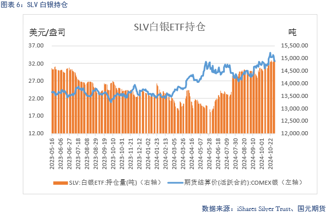 截止11月1日当周,SPDR持仓量为888.63吨,与前一周相比减少1.15吨,目前基金持仓基本维持稳定。截止11月1日当周,SLV持仓量为14949.64吨,与前一周相比增加76.57吨,目前基金持仓基本维持稳定。